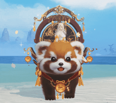 坐骑“红豆瑞圆”以呆萌可爱的小熊猫为原型,结合剑侠江湖中的神秘传说,成为了象征着和平与勇敢的瑞兽。红褐相间,通体浑圆,貌似狸奴,憨态可掬,蓬松的大尾巴占据大半身形,随着跑动上下晃动好不惹人喜爱。“红豆瑞圆”身负古典木质座驾,缀以大量铜钱状圆饰,流光溢彩,富贵华丽,坐于其中,有如御驾亲征之气质。